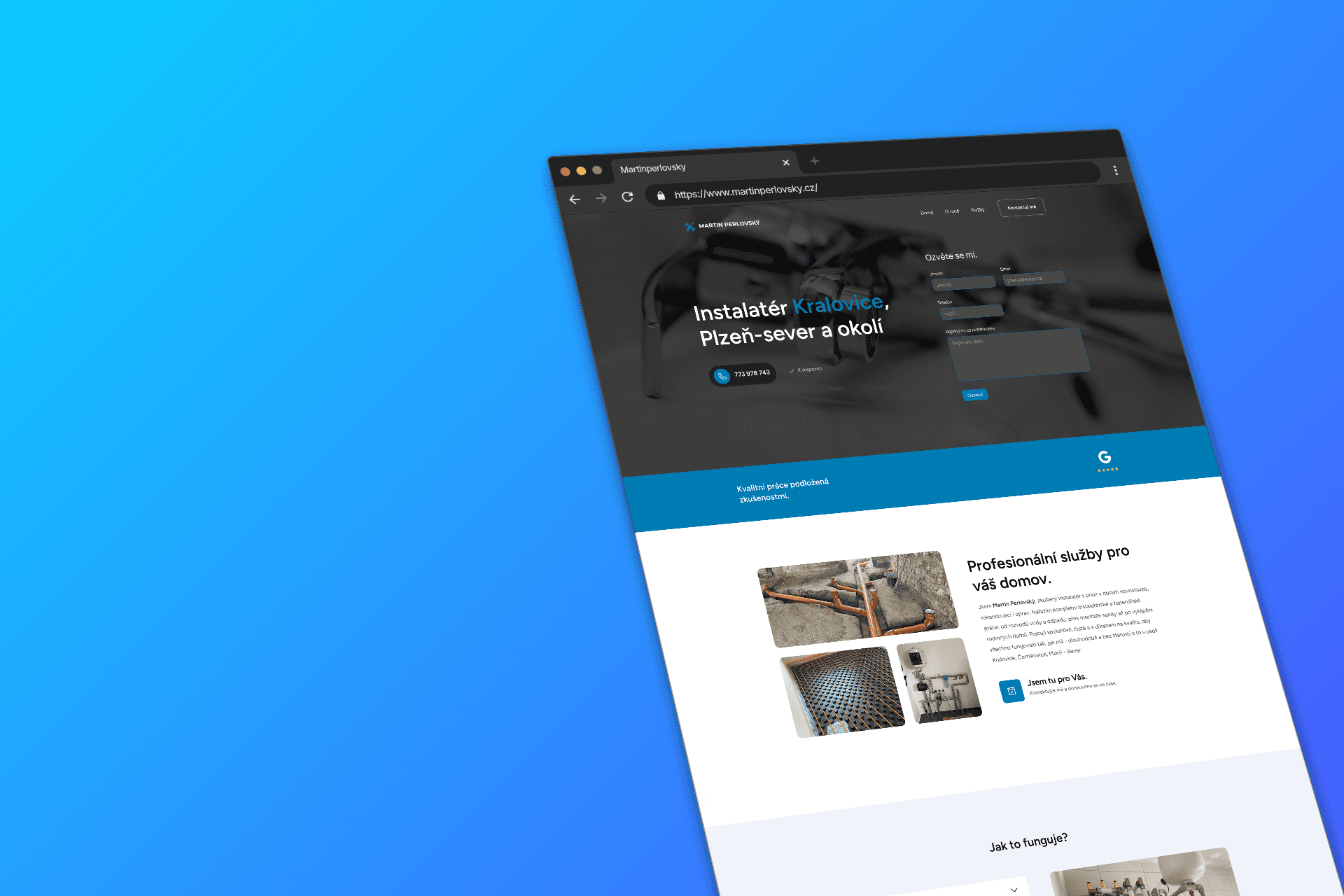 Cílem projektu bylo vytvořit reprezentativní a funkční webovou stránku pro lokálního řemeslníka, který potřeboval posílit svou digitální identitu v regionu Kralovicka. Hlavním požadavkem byl moderní vzhled, perfektní zobrazení na mobilních telefonech a především extrémně rychlá doba dodání. Klient kladl důraz na to, aby web působil čistě, profesionálně a umožnil zákazníkům okamžitý kontakt bez zbytečných prodlev. Jako technologický základ jsem zvolil platformu Framer, která umožňuje špičkový design přímo propojit s produkčním kódem. Díky tomuto přístupu se podařilo celý proces od návrhu struktury až po ostré nasazení na doménu zkrátit na pouhých sedm dní. Webová prezentace využívá moderní layout s důrazem na typografii a přehlednost nabízených služeb. Stránky jsou plně responzivní a optimalizované pro rychlé načítání, což je klíčové pro uživatele vyhledávající řemeslné služby přímo v terénu ze svých chytrých telefonů.